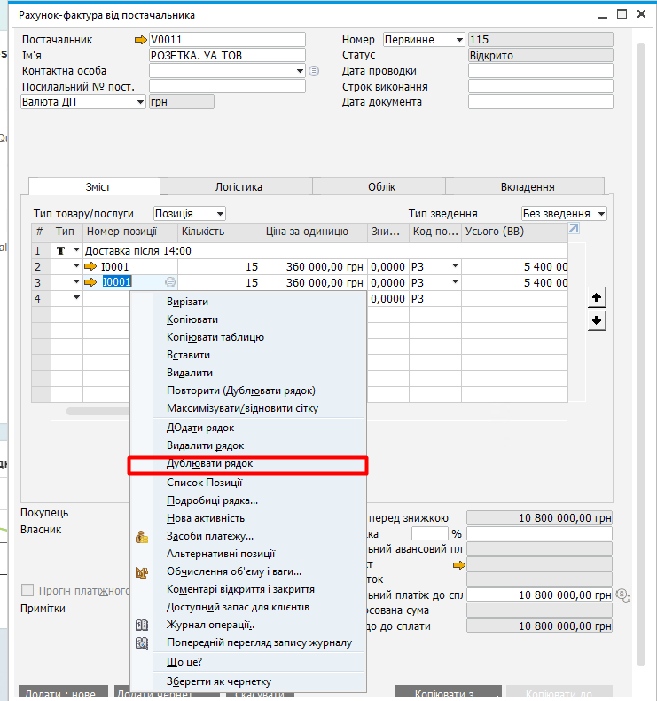 Чи можна дублювати рядок всередині документа, щоб не вводити товар повторно?