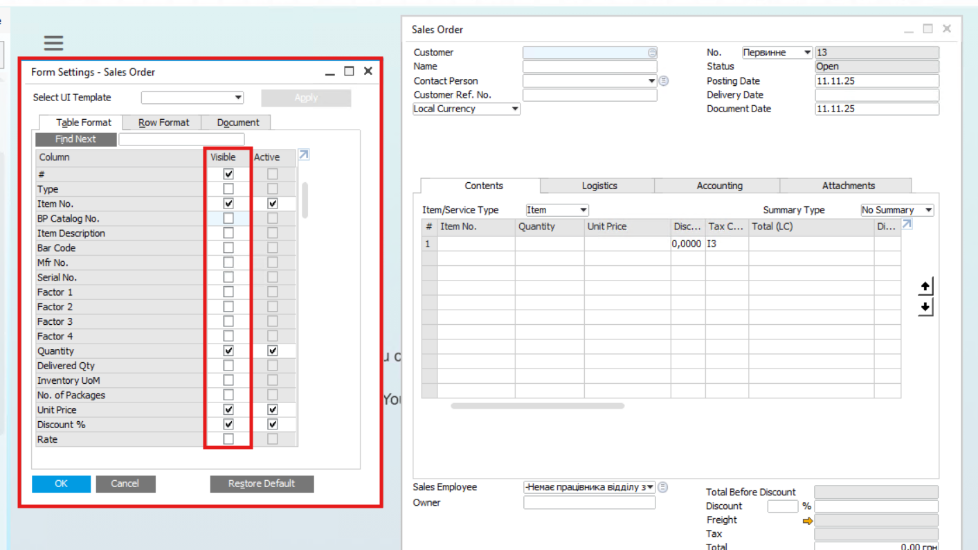 Вітаю! Кожного разу, коли я відкриваю, наприклад, 'Замовлення клієнта', я налаштовую таблицю під себе: приховую непотрібні стовпці і перетягую ті, що мені потрібні. Але варто мені вийти з системи і зайти знову, як всі мої налаштування злітають. Як мені зберегти мій вигляд таблиці назавжди?