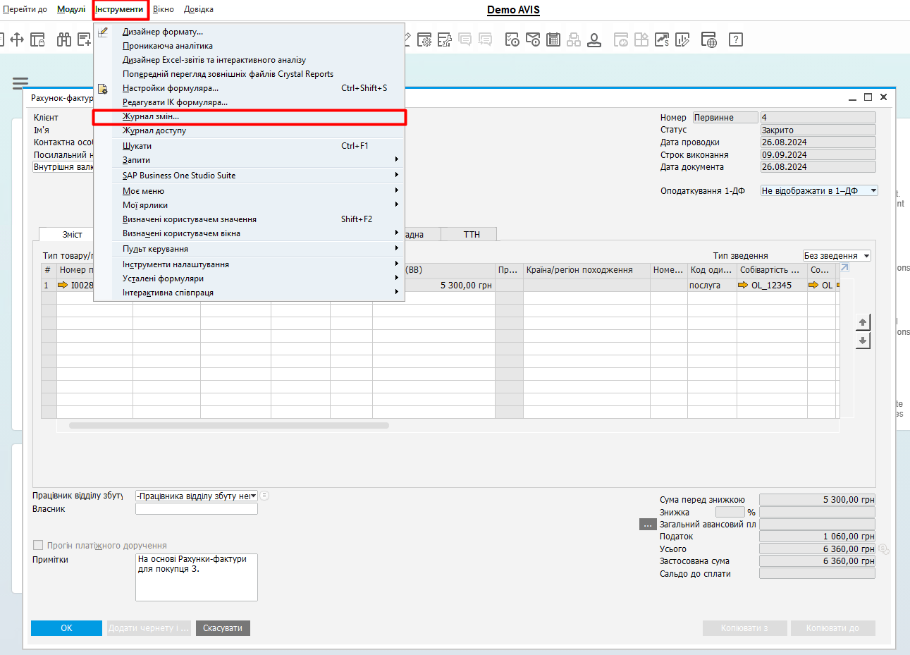 • Якщо вже є наступні документи (наприклад, відвантаження/оплата), ключові поля будуть заблоковані.