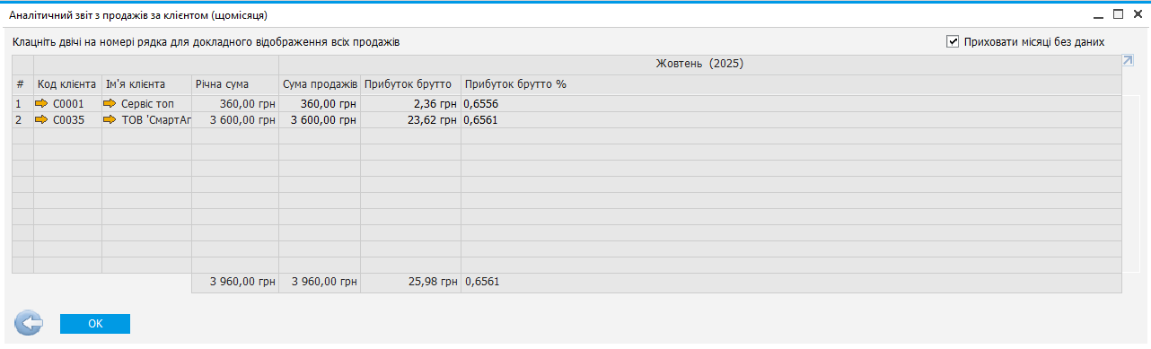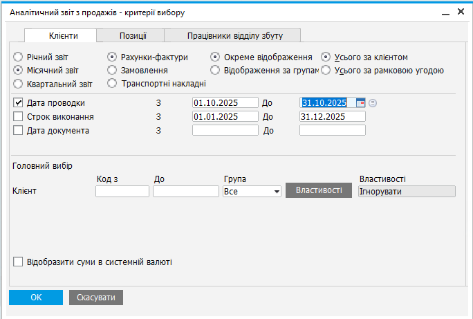 Шлях: Продажі → Звіти з продажів → Аналіз продажів
