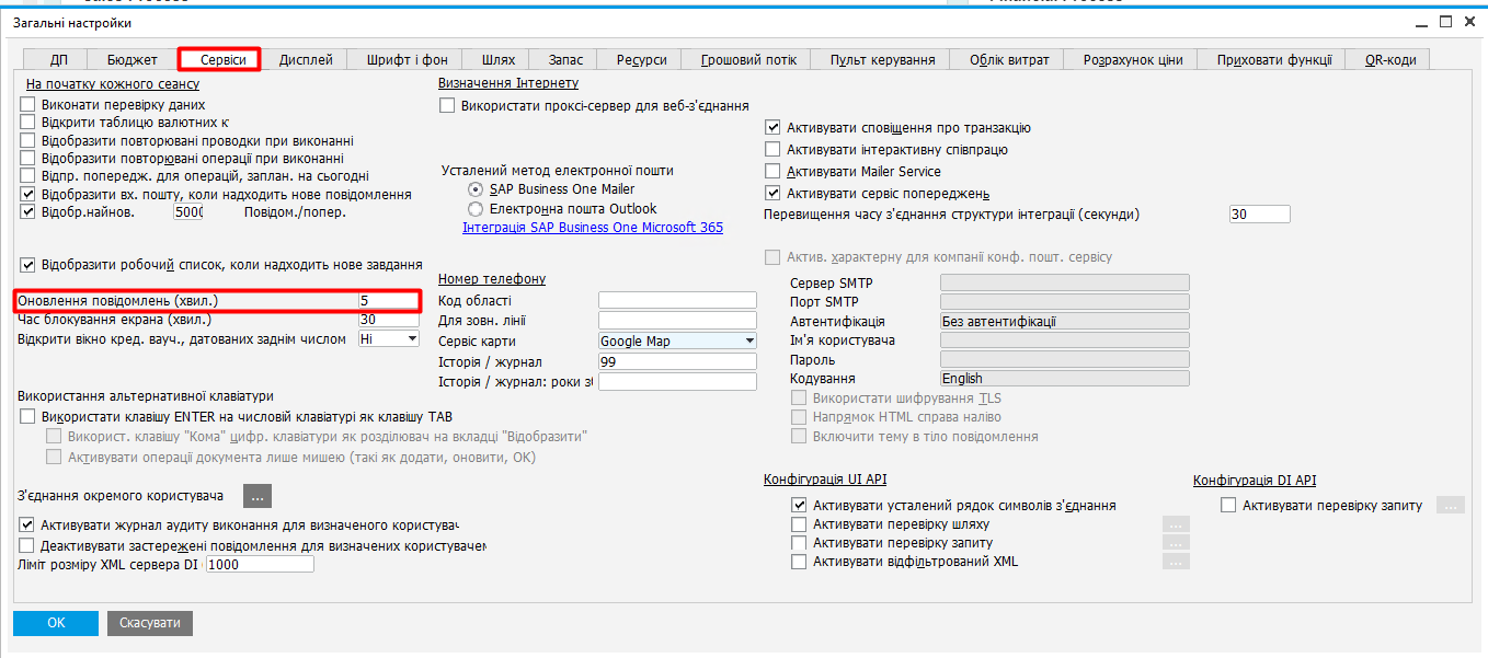 Шлях - Адміністрування → Ініціалізація системи → Загальні налаштування → Сервіси (Administration → System Initialization → General Settings → Services)