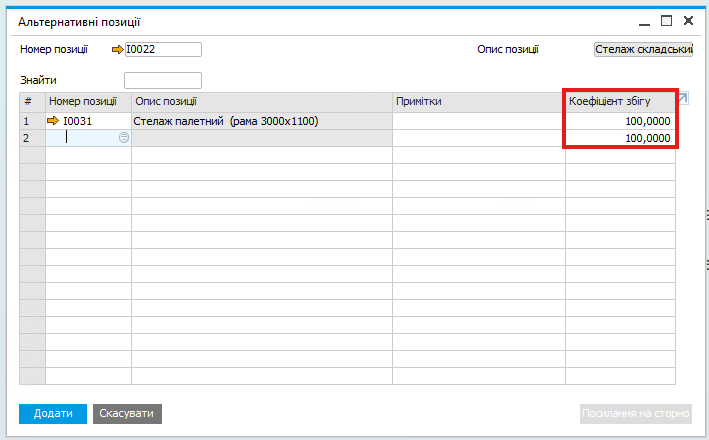 Шлях: Запас → Керування позиціями → Альтернативні позиції(Inventory → Item Management → Alternative Items)