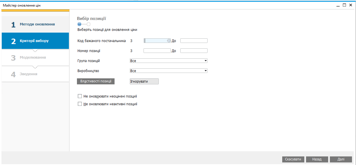 Позиції: звузьте набір товарів: