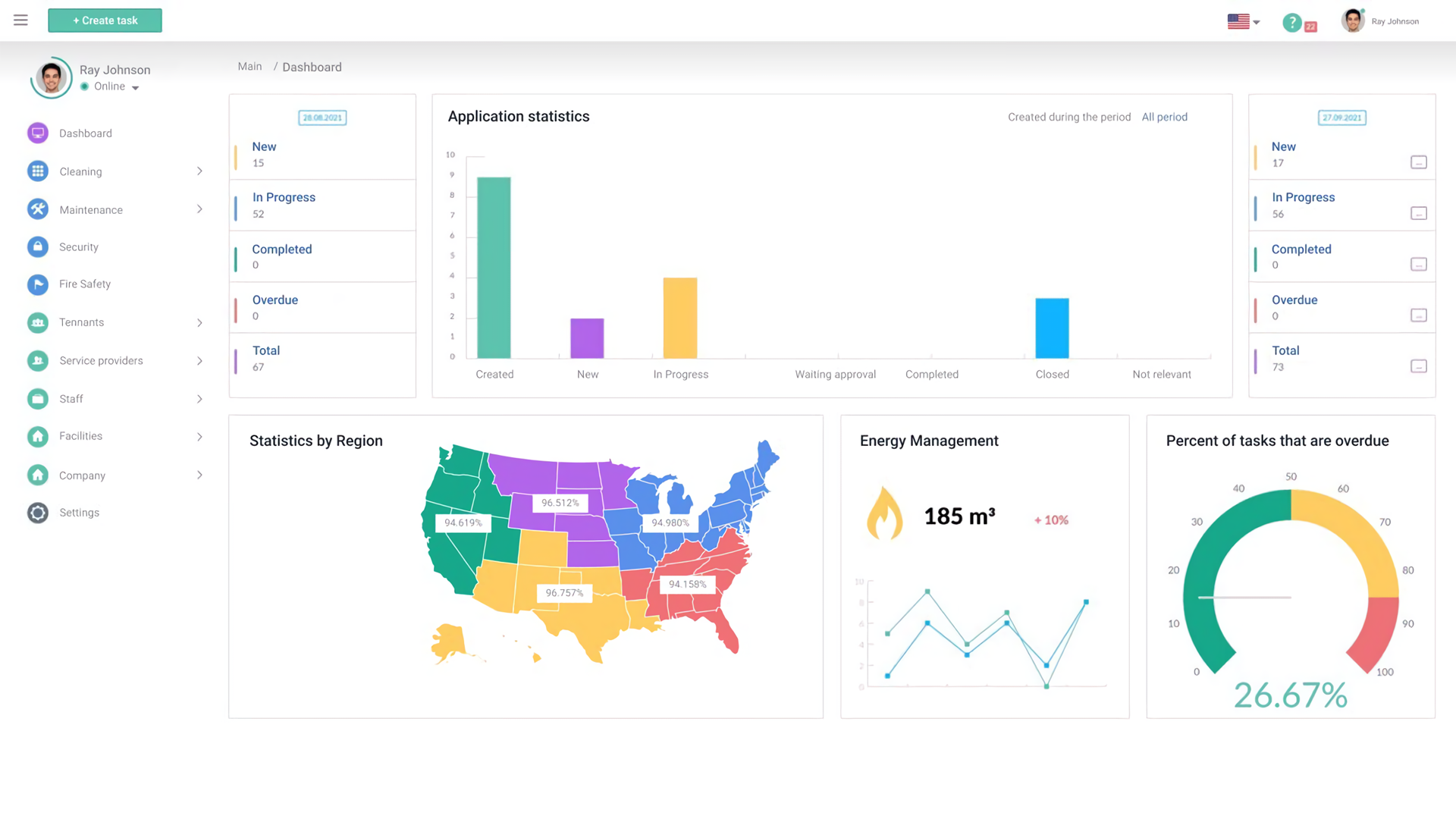Prengi надає потужні інструменти для аналітики, які дозволяють оцінити ефективність експлуатації, виявити проблемні зони, відстежувати KPI підрядників та персоналу. Інтерактивні дашборди, графіки та звіти дають змогу приймати обґрунтовані рішення не "на око", а на основі фактичної інформації. Це критично важливо для стратегічного управління великими портфелями нерухомості.